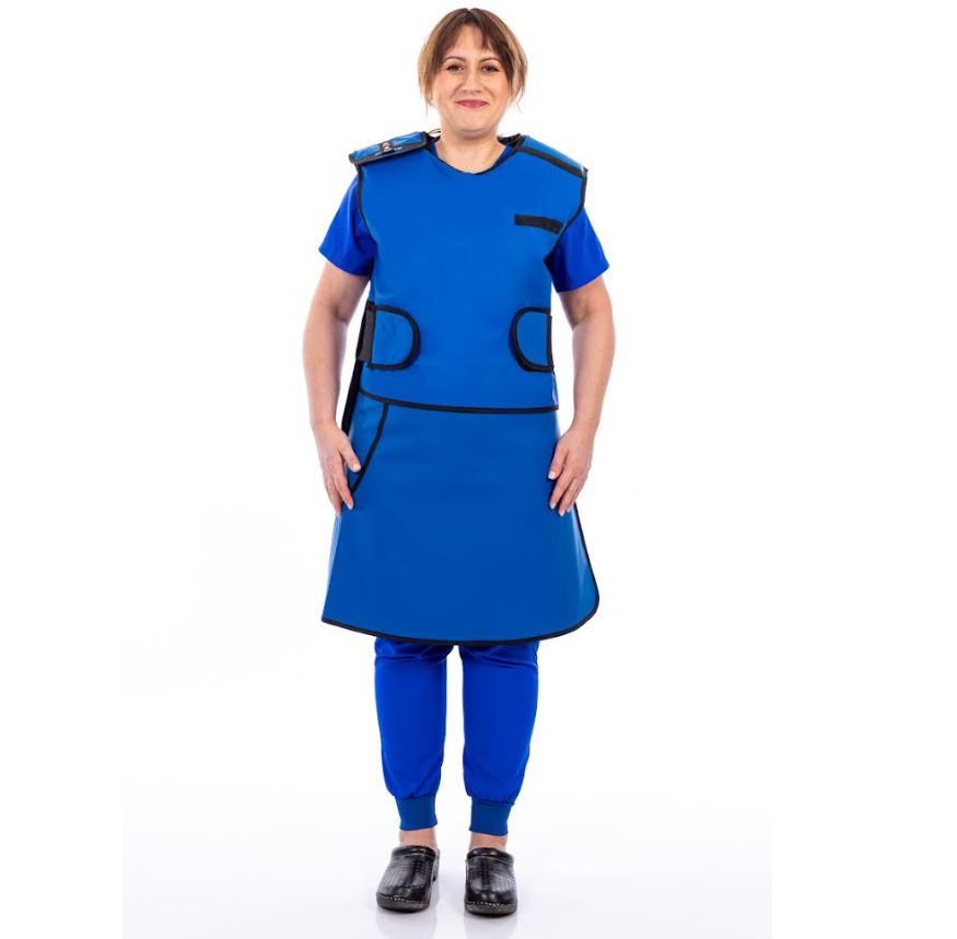 Fartuch RTG RX 204 to dwuczęściowy, dwustronny zestaw ochronny zaprojektowany z myślą o personelu pracującym w środowisku promieniowania. Konstrukcja składająca się z kamizelki i spódnicy zapewnia równomierne rozłożenie ciężaru oraz wysoki komfort użytkowania nawet podczas długich procedur.