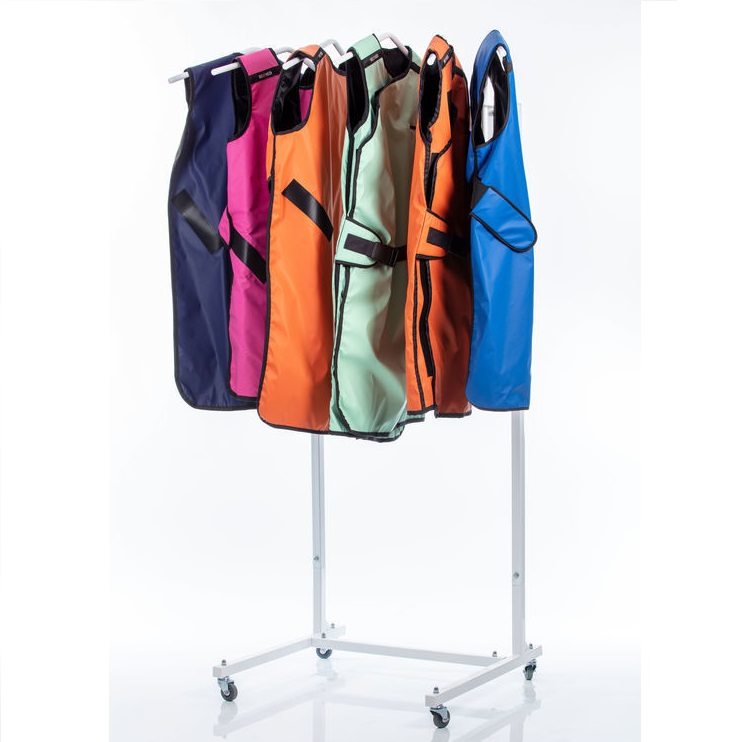 Sześcioramienny wieszak mobilny na fartuchy ochronne RTG. Wieszak jest wyposażony w ramiona obrotowe.