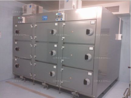 - Zastosowanie do budowy komory, jak również jej wyposażenia materiałów nierdzewnych – kwasoodpornych pozwala na użycie szerokiej gamy systemów do dezynfekcji komór. Przykładowo można zastosować tradycyjny system natrysku środkami chemicznymi lub innowacyjny system aktywnej mgły (mikrodyfuzja)