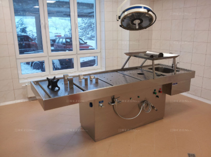 Stół przeznaczony jest do wykonywania sekcji zwłok w Szpitalach, Zakładach Medycyny Sądowej oraz jednostkach niepublicznych. Konstrukcja oraz wyposażenie stołu gwarantuje możliwość przeprowadzenia sekcji w pełnym zakresie. Stół wykonany jest z wysokogatunkowej stali nierdzewnej kwasoodpornej ozn. 1.4301 wg europejskiej normy EN 10088.