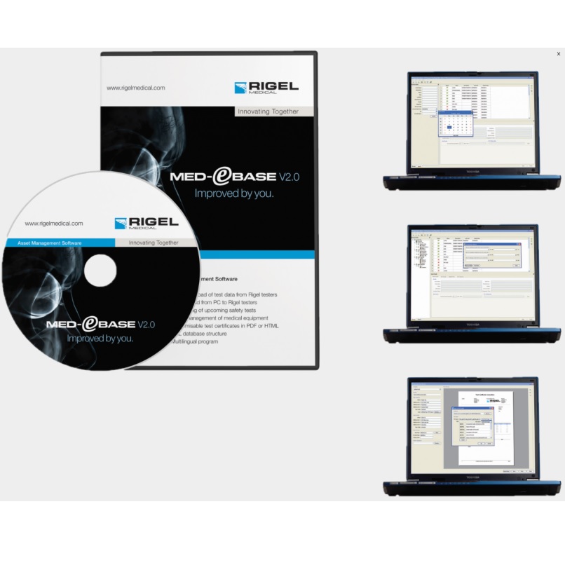 RIGEL MED e-BASE to oprogramowanie umożliwiające pobieranie i przechowywanie wyników testów z wszystkich testerów Rigel wyposażonych w pamięć. Możemy potem wygenerować raport z badania, przeglądać historię czy zaplanować kolejne przeglądy. W zależności od modelu testera komunikacja odbywa się poprzez Bluetooth, USB lub RS232. Dzięki niemu możemy w łatwy sposób drukować certyfikaty dla przebadanych urządzeń czy kontrolować czas do kolejnego testu. Aplikacja oparta jest o konstrukcje SQL i jest dostępna w polskiej wersji językowej. Możliwosć przeglądania czy szukania wyników po wielu różnych kryteriach znacznie przyspisza pracę.