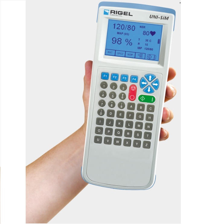 RIGEL UNI-SIM to pierwszy zintegrowany w jednym urządzeniu symulator funkcji życiowych pacjenta. Potrafi generować aż sześć różnych sygnałów: NIBP (nieinwazyjne ciśnienie krwi) EKG, Oddech, SpO2 (saturacja), IBP (inwazyjne ciśnienie krwi) i Temperatura. Wszystkie sygnały są ze sobą zsynchronizowane i umożliwiają pełną diagnostykę monitorów pacjenta. Dzięki zastosowaniu tego symulatora znacząco skraca się czas potrzebny do prawidłowego wykonania wszystkich niezbędnych testów. Możliwość jego dowolnego programowania daje nam nieograniczone możliwości w testowaniu i dopasowaniu symulacji do każdego rodzaju monitora pacjenta dowolnego producenta. Tak jak większość naszych rozwiązań posiada polskie menu, wbudowaną klawiaturę, pamięć wyników oraz technologię Bluetooth. To prawdziwa rewolucja w inżynierii biomedycznej.