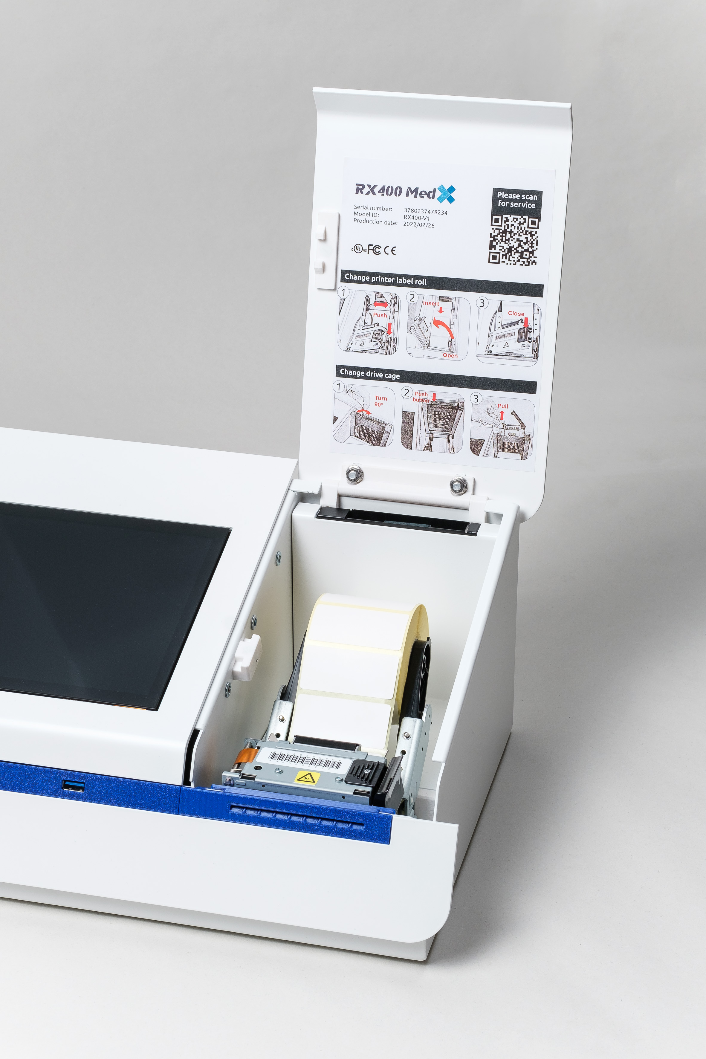 RX400 ClientX wyposażono we wbudowany komputer, 4 przednie porty USB, drukarkę etykiet oraz ekran dotykowy. W razie potrzeby można też dodać wewnętrzny napęd DVD umożliwiający bezpieczne importowanie danych z płyt CD i DVD. Korzystając z interfejsu WebClient, urządzenie można bez problemu zintegrować z istniejącym przepływem danych, tak jak zwykłą drukarkę.