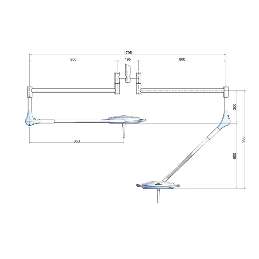 „Dolny” uchwyt montowany jest zatrzaskowo i nadaje się do sterylizacji w autoklawie. Unikalnie zaprojektowane ramię z wbudowaną sprężyna ruchową gwarantuje stabilność oraz łatwość manewrowania. Opór ramienia można regulować nawet po wielu latach użytkowania.