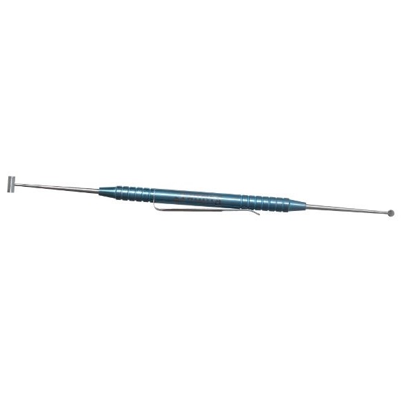 - Depresor twardówkowy Schocket, dwustronny, tytanowa rączka, stalowe końcówki.