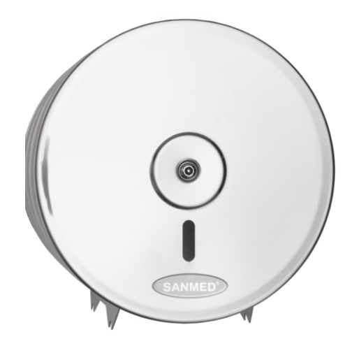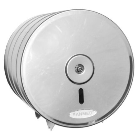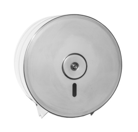 Podajnik do papieru typu JUMBO wykonany jest w całości ze stali nierdzewnej, posiada oczko pozwalające kontrolować poziom papieru.
