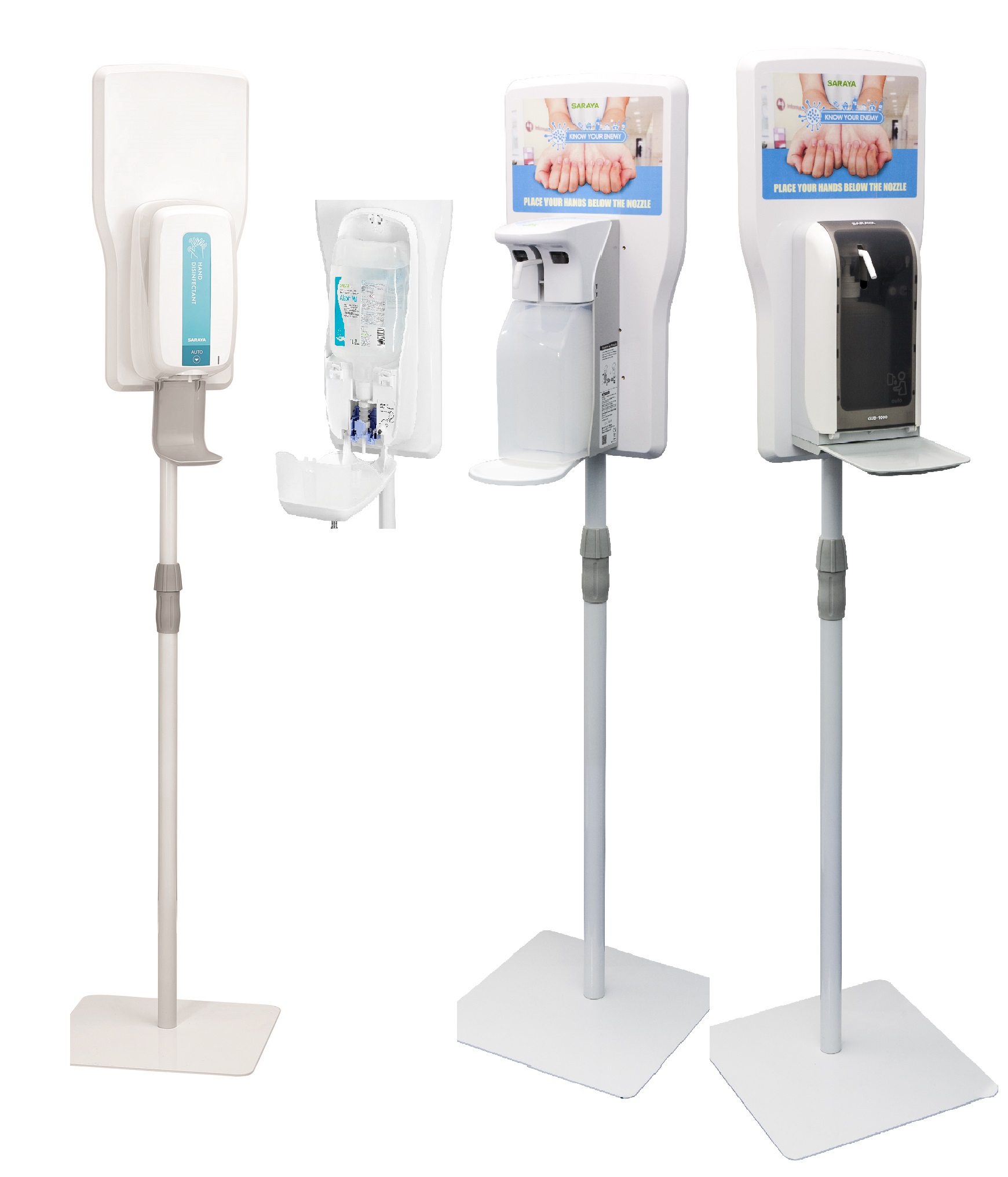 Przenośna stacja do dezynfekcji rąk składająca się z zestawu elementów SARAYA: