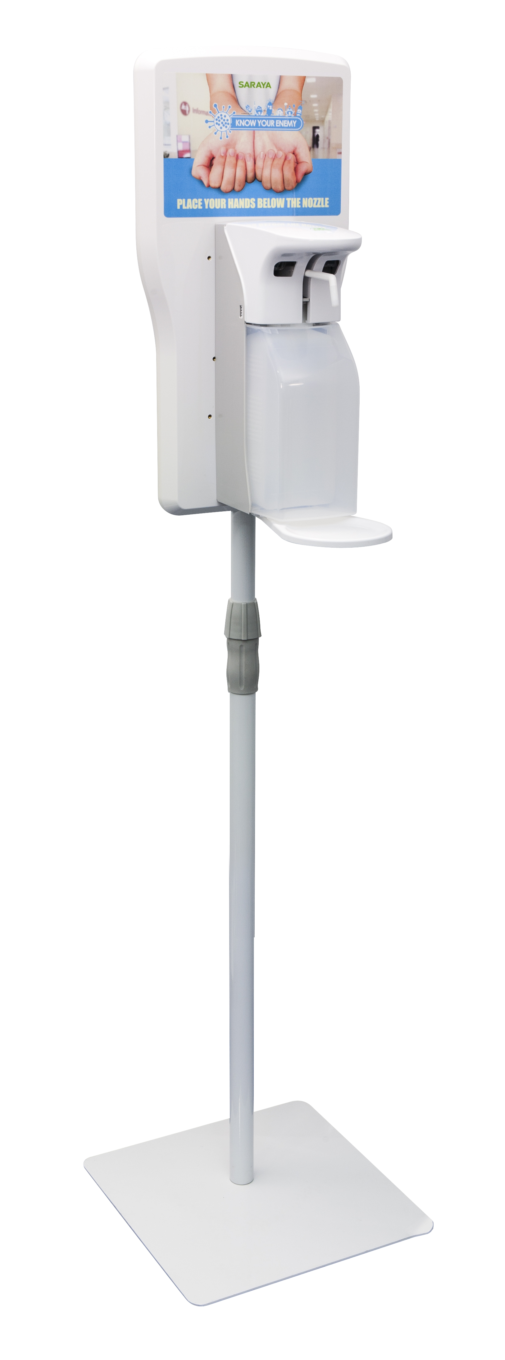 - dozownik bezdotykowy SARAYA z tacką ociekową; pasujące modele: UD-1600E; GUD-1000AT; ADS-500/1000