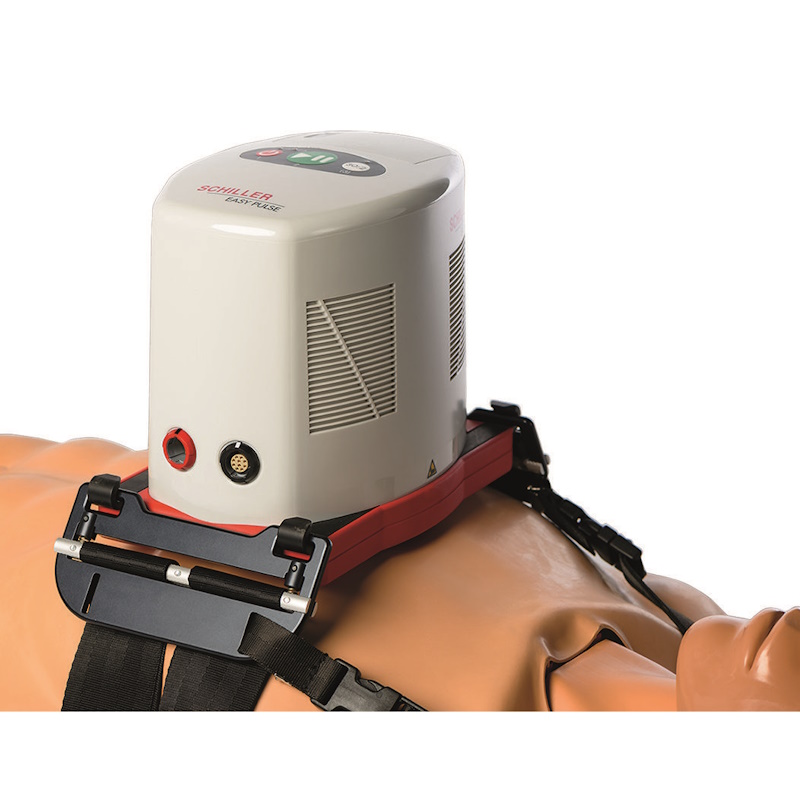 Prawidłowe ręczne wykonywanie uciśnięć klatki piersiowej przez dłuższy czas jest prawie niemożliwe. Aparat EASY PULSE firmy SCHILLER to rozwiązanie zwiększające skuteczność resuscytacji: to przenośne, niezależne urządzenie automatycznie zapewnia uciskanie klatki piersiowej ze stałą, prawidłową częstością i głębokością.