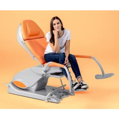 Funkcjonalny – Oparcie można ustawić w pozycji poziomej. Oznacza to, że pacjentka może być położona płasko, np. do badania ultrasonograficznego lub w sytuacji wstrząsu w nagłych przypadkach. Głębokie wycięcie sekcji siedziska 155 mm zapewnia lepszy dostęp do obszaru badania. Nawet jeśli pacjentka znajduje się w pozycji uniesienia miednicy, podnosząca się miska pozostaje w pozycji poziomej