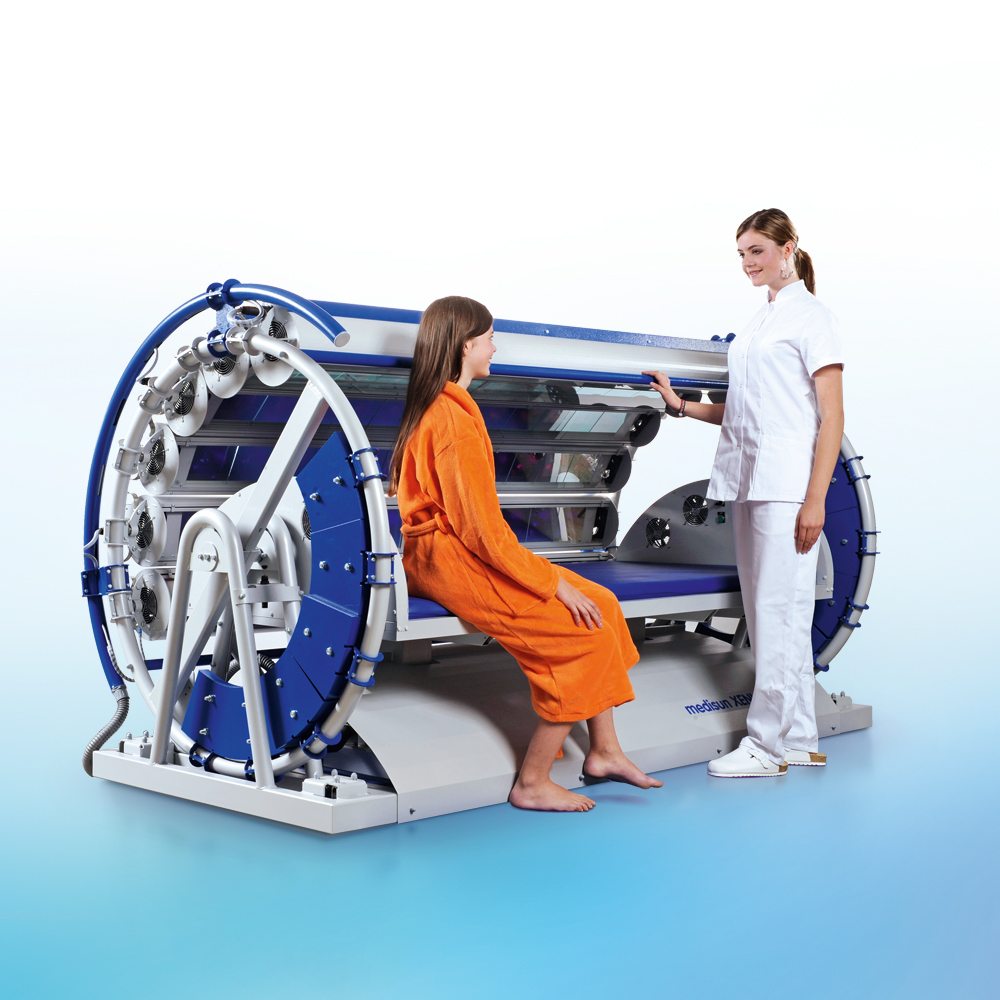 Sterowanie komputerowe medisun® zapewnia precyzyjne dawkowanie w J/cm². Możliwość ustawienia różnego natężenia sześciu indywidualnych pól oświetlenia. Urządzenie możemy również podłączyć do systemu zarządzania terapią medisoft przy pomocy przewodu sieciowego. Sterowanie odbywa się wówczas zdalnie, poprzez komputer PC, znajdujący się np. na biurku recepcji. Personel medyczny może korzystać z zaprogramowanych planów terapii oraz pełnej dokumentacji, zapisywanej w bazie danych. BEZPIECZEŃSTWO I KOMFORT użytkowania na najwyższym poziomie. Zintegrowana historia pacjenta pozwala na dokładny przegląd aktualnej terapii oraz ukończonych procedur. Wygodna funkcja protokołu umożliwia wydruk protokołów terapii. Połączenie lamp ksenonowych UV i wysokiej jakości filtrów świecowych pozwala na uzyskanie selektywnego spektrum światła, pomiędzy 340 i 460nm, co zapewnia najwyższą skuteczność zabiegową. Typowy czas ekspozycji wynosi od 10 do 30 minut.