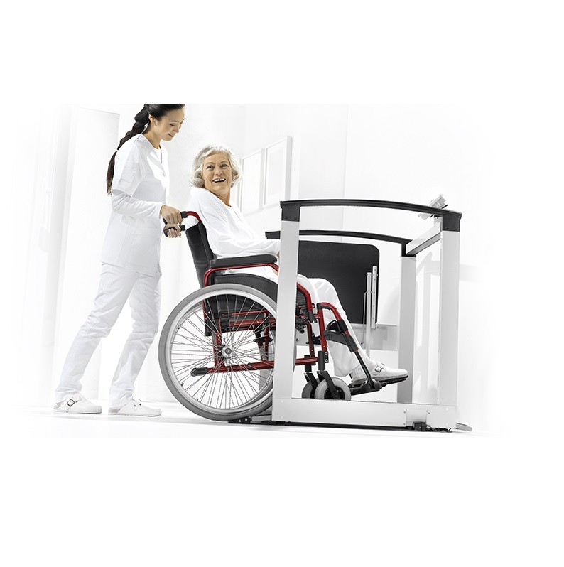 Stabilna poręcz zapewnia oparcie dla stojącego pacjenta, składane siedzisko pozwala na wygodne przyjęcie pozycji siedzącej, natomiast duża platforma (80 x 84 cm) świetnie nadaje się dla pacjentów poruszających się na wózkach inwalidzkich. Zastosowanie funkcji Pre-TARA pozwala w trakcie ważenia pacjenta odjąć masę wózka inwalidzkiego lub chodzika. Pacjentom zapewniono łatwy dostęp do platformy ważącej i bezpieczeństwo, ponieważ waga wyposażona została w ogranicznik na przednie koła wózka inwalidzkiego. Ponadto waga seca 685 wyposażona została w nową technologię seca 360° wireless, która umożliwia bezprzewodowy transfer wszystkich pomiarów do bezprzewodowej drukarki seca lub na oprogramowanie sceca zainstalowane na komputerze PC. Dodatkowe atuty: czytelny wyświetlacz obrotowy można odwracać w stronę pacjenta lub opiekuna, praktyczna funkcja HOLD pokazuje wynik pomiaru masy ciała również po opuszczeniu przez pacjenta platformy wagowej, funkcja tłumienia zapewnia precyzję pomiaru, antypoślizgowa gumowa powłoka i poręcz chronią pacjenta przed upadkiem, a zintegrowane z urządzeniem rolki transportowe ułatwiają jego przemieszczanie.