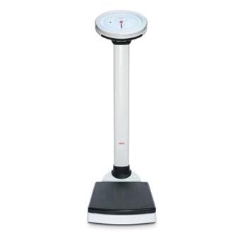 Wskaźnik BMI jest w kontrastowym kolorze na wyświetlaczu i uruchamia się on automatycznie przy wejściu na wagę. Widoczny jest on pod wskaźnikiem skali wagi, w małym okienku, obok którego nadrukowana jest skala wzrostu. Gdy waga jest określona, z łatwością można odczytać zakres BMI, który kontrastowymi kolorami podzielony jest na niedowagę, wagę prawidłowa, nadwagę i otyłość (skrajną nadwagę). Płaska platforma i praktyczne rolki transportowe to jedne z zalet seca 756. Waga dostępna jest także ze wzrostomierzem.