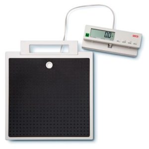 Przewód długości 2,25 m łączy wyświetlacz z bazą pomiarową. Zaleta: wyświetlacz można umieścić z dala od bazy i odczytywać wyniki na ścianie lub biurku. Dodatkowym udogodnieniem jest wyposażenie w kilka szczególnych funkcji ważenia: BMI do określenia stanu odżywienia, HOLD do zablokowania wyświetlanych pomiarów a TARA do np. ważenia małych dzieci trzymanych na rękach przez rodziców. Waga nadaje się do użytku stacjonarnego i przenośnego, dzięki uchwytowi, kompaktowym rozmiarom, niewielkiej wadze własnej oraz podstawie samopoziomującej, która umożliwia ważenie na każdej nawierzchni.