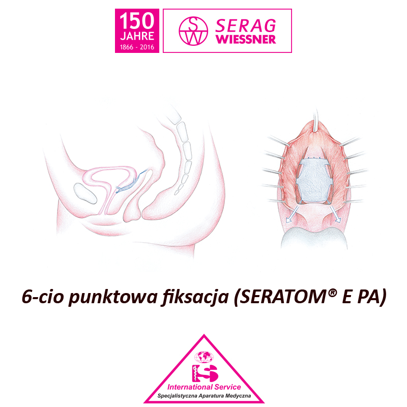 System SERATOM® oferuje różne siatki do rekonstrukcji dna miednicy, wraz z odpowiednimi narzędziami chirurgicznymi. Warianty systemu umożliwiają optymalną naprawę obniżenia narządów miednicy mniejszej, zarówno w kompartymencie przednim jak i tylnym. Unikalna makroporowa siatka zapewnia optymalne zawieszenie macicy lub sklepienia pochwy. Wszczepienie siatki SERATOM® likwiduje obniżenie i wypadanie, a jednocześnie stabilizując tkanki utrzymuje ich prawidłową statykę. Podtrzymujący implant jest przymocowany do stabilnych struktur w miednicy za pomocą indywidualnie przeprowadzonych i napiętych taśm. Powoduje to anatomicznie prawidłowe, trwałe odbudowanie dna miednicy – co jest ważnym czynnikiem przywrócenia prawidłowej funkcji pęcherza moczowego oraz jelit. Główne włókna składają się z włókien dwuskładnikowych (monofilament powleczony wchłanialną warstwą glikolidu i e-kaprolaktonu). Procedura produkcyjna pozwala na uzyskanie lekkiej, miękkiej siatki o dużych porach. Przy zminimalizowanej ilości obecnego ciała obcego, makroporowa struktura pozwala na dobre przerastanie siatki tkankami. Wszczepiona siatka wykazuje się stałymi właściwościami mechanicznymi in vivo w długim okresie obserwacji. Podstawa siatki i taśmy mocujące produkowane są w sposób jednoczęściowy dzięki czemu kompresja implantu przez tkanki pacjentki rozkłada się równomiernie. W przypadku napięcia, siatka zachowuje swoją trwałość na całej swojej powierzchni. System SERATOM® pozwala na wykonanie małoinwazyjnej, beznapięciowej, korekty chirurgicznej z dostępu przezpochwowego. Znajduje on zastosowanie u pacjentek ze wskazaniami do korekty chirurgicznej cystocoele (uchyłka pochwowego pęcherza moczowego). Jego zastosowanie nie zależy od obecności i statyki szyjki macicy, jak również system znajduje zastosowanie w operacjach pochwowych z powodu obniżenia lub wypadania narządu rodnego jako jeden z elementów korekty.