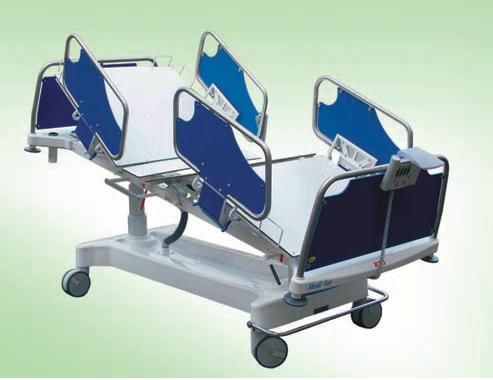 Specjalistyczne łóżko szpitalne przeznaczone dla oddziałów intensywnej opieki medycznej.Wersja mobilna oparta na dwóch cylindrycznych kolumnach. Łóżko z pełnym sterowaniem elektrycznym. Regulacje: wysokooeci segmentu pleców i uda oraz funkcja Anty i Trendelenburga realizowane są za pomocą pilota przewodowego i/ lub panelu centralnego. Dodatkowe funkcje elektryczne: autoregres, autokontur, CPR (również mechaniczny), pozycja antyszokowa. Konstrukcja łóżka wykonana z profili stalowych lakierowanych proszkowo. Czterosegmentowe leże wypełnione jest płytą laminatową. Podwozie łóżka obudowano tworzywem ABS. Powierzchnie łóżka są odporne na oecieranie, wilgoć, promienie UV oraz środki dezynfekcyjne.