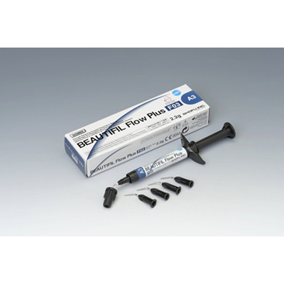 Beautifil Flow Plus F03 – jest materiałem, który może zostać wykorzystany samodzielnie do wypełniania ubytków, a także do wypełniania wcześniej wymodelowanych materiałem Beautifil Flow Plus F00 struktur.