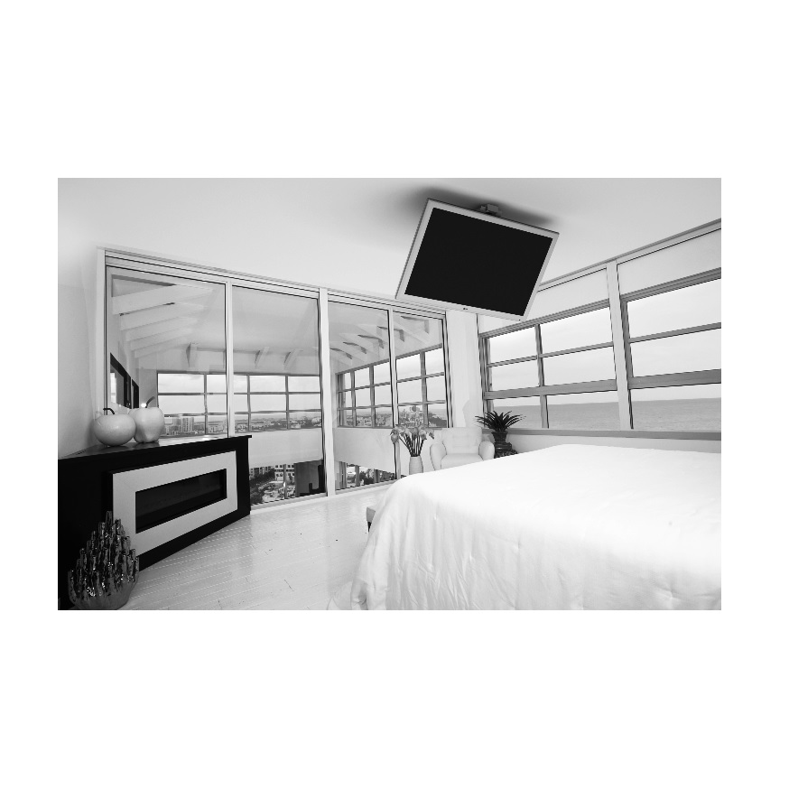 Sufitowy uchwyt TV, oferujący 85° zakres płynnej regulacji kąta nachylenia odbiornika. Przeznaczony głównie do instalacji w sypialni. Tak jak inne nasze uchwyty pozwala na komfortowe oglądanie telewizji w pozycji leżącej. Dostosowany do standardu VESA 20 cm x 20 cm, 20cm x 30 cm, 30 cm x 30 cm, 30 cm x 40 cm, 40 cm x 40 cm. Przeznaczony dla telewizorów 32" i większych – minimalna wysokość telewizora 60 cm.