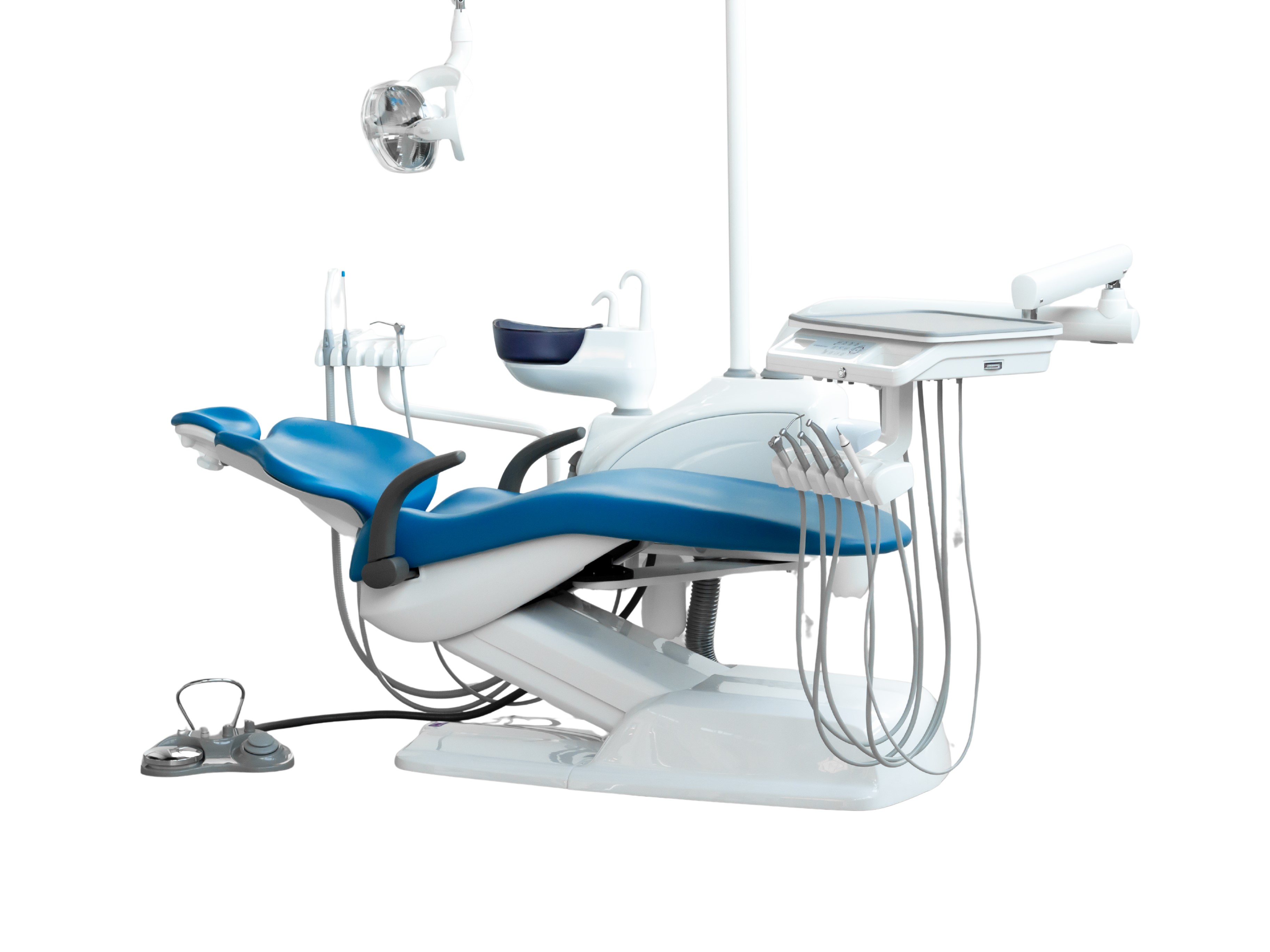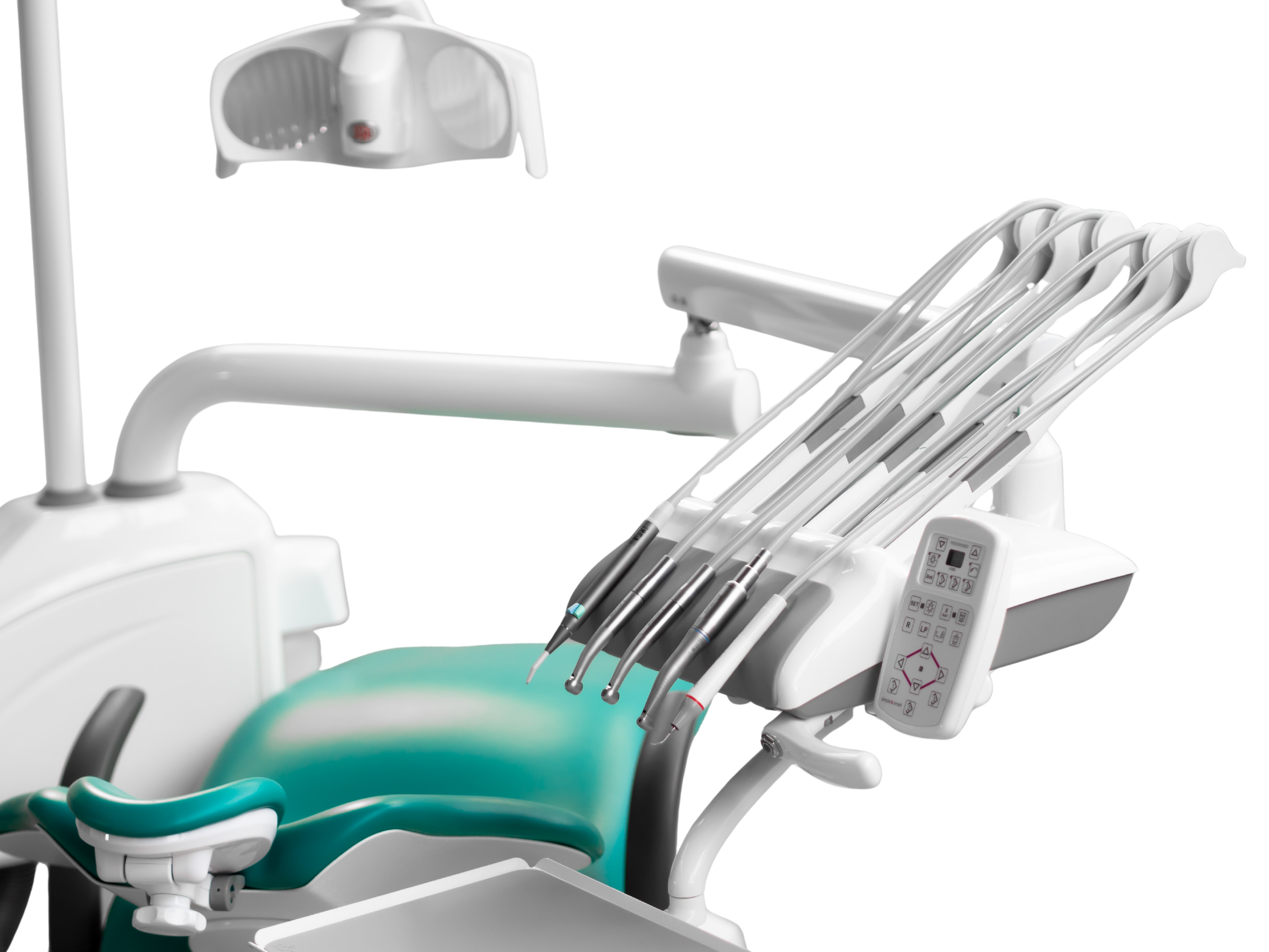 Simple and Smart – Model One to unit stomatologiczny stworzony z myślą o gabinetach potrzebujących prostego, funkcjonalnego i ekonomicznego rozwiązania. Urządzenie łączy niezawodne podstawowe funkcje z ergonomiczną konstrukcją, zapewniając wysoką wydajność i komfort pracy przy optymalnych kosztach. Filozofia Modelu One to prostota – mniej elektroniki, mniej problemów – co przekłada się na łatwy montaż, intuicyjną obsługę i wysoką niezawodność. Fotel zaprojektowano tak, aby pacjent czuł się pewnie i wygodnie przez cały zabieg, a ergonomia pozwala lekarzowi pracować w swobodnej pozycji, także od tyłu, w ustawieniu na godzinie 12. Smukłe metalowe oparcie poprawia dostęp do pola zabiegowego i komfort pacjenta. Konsola lekarza może być skonfigurowana z prowadzeniem rękawów od góry lub od dołu, w dowolnej kolejności i z dowolnym zestawem funkcji – w tym mikrosilnikami elektrycznymi TKD lub Bien-Air, rękawami turbinowymi, skalerem (również w wersji Endo), lampą polimeryzacyjną i strzykawko–dmuchawką. Komponenty Dürr Dental zapewniają długowieczność i bezawaryjność, a elastyczne warianty podłączeń umożliwiają montaż unitu w niemal każdym gabinecie: do pompy mokrej lub suchej, z zaworami selektywnymi i spluwaczkowymi wymagającymi tylko jednego odpływu, w klasycznym układzie z oddzielnymi odpływami lub bez użycia pompy w systemie Air-Venturi lub Air-Air.