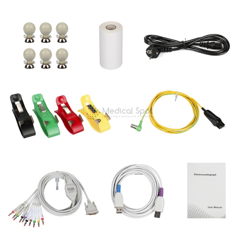 - Elektrody podłączane są do pacjenta (12 odprowadzeń)