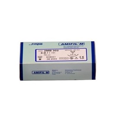 Nici chirurgiczne niewchłanialne, poliamidowe, jednowłóknowe. Sterylne nici chirurgiczne w postaci monofilu, koloru niebieskiego. Sterylizowane tlenkiem etylenu. Nici chirurgiczne Amifil M produkowane są w odcinkach z igłami atraumatycznymi różnych typów. 10 sztuk w opakowaniu.