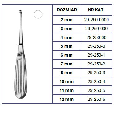 Łyżeczka kostna wykonana ze stali nierdzewnej, okrągła.