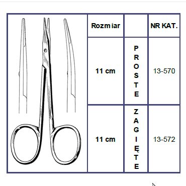 Nozyczki wykonane są ze stali nierdzewnej proste lub zagięte.
