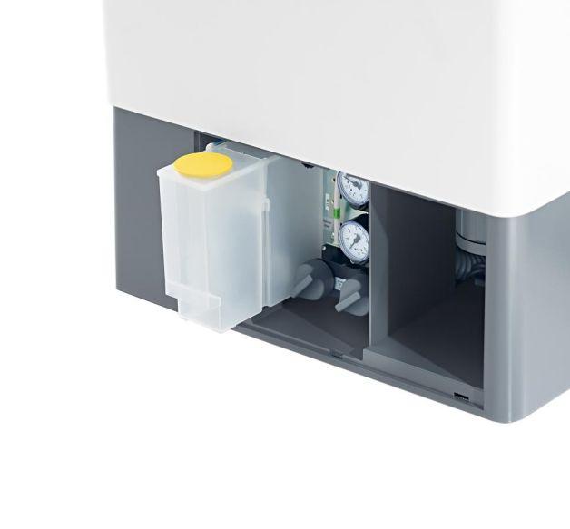 - Zintegrowany system dezynfekcji (Intego Pro) – uzdatnianie wody sieciowej, przepłukiwanie i sanitacja unitu zgodnie z normą EN1717