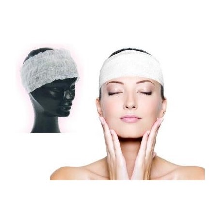 Kosmetyczna opaska na włosy wykonana z włókniny, wzmocniona gumkami.