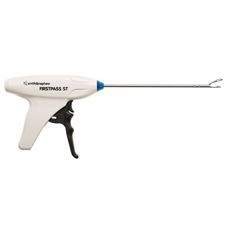 Prowadnica szwu FIRSTPASS została opracowana tak, aby umożliwić równomierne i bezpieczne przeciąganie szwu. Urządzenie FIRSTPASS służy do jednoczesnego przeciągania i naprawy szwów. Narzędzie do obsługi szwów prowadzi się jedną ręką; można je łatwo zmontować/zdemontować.