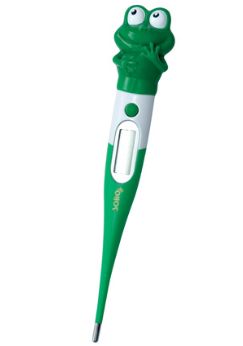 Termometr z elastyczną końcówką, przeznaczony dla dzieci, jego kształt sprawia że dzieci z chęcią mierzą temperaturę. Specyfikacja: elastyczna końcówka, bezpieczna konstrukcja polecana dla dzieci, czytelny wyświetlacz LCD, szybki pomiar, sygnalizacja dźwiękowa, automatyczne wyłączanie .