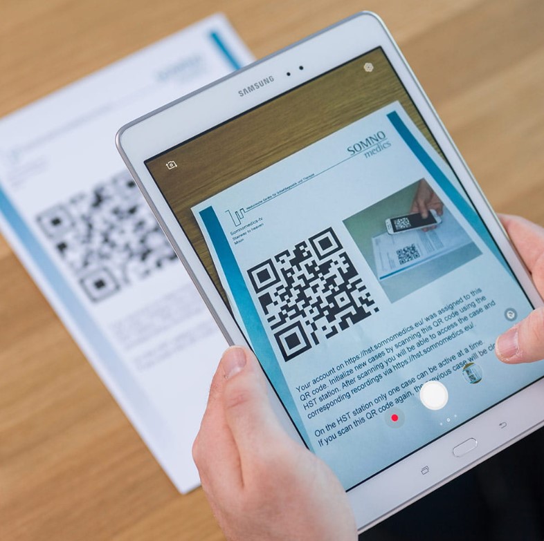 Instrukcja video na tablecie prowadzi pacjenta przez mocowanie czujnika z elektrodami i biokalibrację . Tablet automatycznie rozpoznaje, który z dwóch systemów HST jest używany i wyświetla odpowiednie filmy wideo dotyczące aplikacji. Po zakończeni badania wszystkie dane z czujnika przesyłane są do tabletu poprzez Bluetooth. Chrapanie rejestrowane jest za pomocą mikrofonu w tablecie.