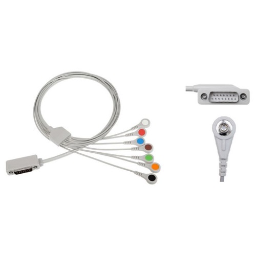 7. Kabel EKG do kardiomonitorów nierozłączny, złącze KB-5/0, wtyk 76a, klamra M/1, długość 60/270 cm, kolor 51 [żółt/czer/ziel/biał/czar], opakowanie 1 szt.
