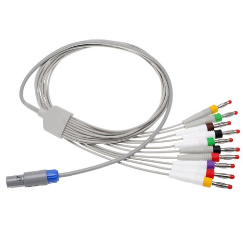 1. Kabel EKG do kardiomonitorów nierozłączny, złącze KB-3/0, wtyk 24b, klamra M/0, długość 60/270 cm, kolor 32 [żółt/czer/czar], opakowanie 1 szt.
