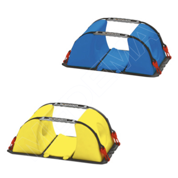 Spencer Contur to wyjątkowy stabilizator głowy szczegółowo badany pod kątem zapewnienia optymalnego unieruchomienia pacjentów z urazami. W połączeniu z deską ortopedyczną i sztywnym kołnierzem szyjnym, pozwala na transport pacjenta w stanie krytycznym nawet podczas długich i niewygodnych dla pacjenta przejazdów. Dobre unieruchomienie głowy umożliwia ratownikom poświęcić więcej czasu oraz uwagi na ułożenie pacjenta w pozycji bezpiecznej dla odcinka szyjnego. Ten jedyny w swoim rodzaju stabilizator głowy został zaprojektowany przez ekspertów ratownictwa, a jego działanie zostało sprawdzone podczas akcji ratowniczych. Zestaw podtrzymuje czaszkę uwzględniając jej budowę fizjologiczną tak, aby zapobiec powstawaniu dodatkowego ucisku, oraz uzupełnia unieruchomienie kręgów zapewnione już przez kołnierz ortopedyczny. Stabilizator głowy Spencer Contour składa się z dwóch pojedynczych bloków, wykonanych z miękkiego plastiku i podstawy wyposażonej w pasy służące do przymocowania do deski ortopedycznej dowolnego typu. Oba bloki utrzymują się na podstawie dzięki systemowi silnych rzepów Velcro®, podstawa z kolei przymocowana jest do deski ortopedycznej (dowolnego typu) przy pomocy pasów znajdujących się w zestawie lub także przy pomocy rzepów Velcro®. W obu blokach wykonano otwory, które pozwalają na zbadanie, czy w przewodach słuchowych nie znajduje się krew lub inna ciecz. Ponadto, otwory są na tyle duże, że ratownik może nawiązać komunikację z pacjentem. Nowa technologia formowania tworzyw pozwoliła skonstruować korpus ciągły, z dostatecznie grubą warstwą ochronną, zapewniającą wytrzymałość. Do podstawy można przymocować dwa pojedyncze bloki dla pacjentów dorosłych i dzieci, dzięki możliwości usunięcia dodatkowej poduszki znajdującą się między blokami. Materiał, który zastosowano przy produkcji powłoki jest nieprzepuszczalny i dzięki temu nie wchłania płynów organicznych (krwi, wymiocin, śluzu). Jest odporny na działanie substancji chemicznych, rozpuszczalników, wpływ zmiennych warunków fizycznych oraz zachowuje miękkość nawet przy zmianie temperatury. Jest łatwy w czyszczeniu i umożliwia przeprowadzenie badań radiologicznych.