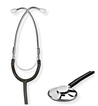 Steto/fonendoskopy. Kompletna linia produktów o idealnym doborze materiałów oraz trosce o detale konstrukcyjne, której funkcjonalność i praktyczność została potwierdzona w terenie. Podstawowy czarny fonendoskop. DGX 110 to prosty, lekki i ultra cienki fonendoskop posiadający membranę umożliwiającą przeprowadzenie badania osłuchowego podczas pomiaru ciśnienia krwi. Dopasowujący się dwuuszny łuk. Zapakowany w jedno kartonowe pudełko z nadrukiem wykonanym metodą czterokolorową. Średnica głowicy: 45 mm. Waga: 76 g. DGX 110 - DG02110B.