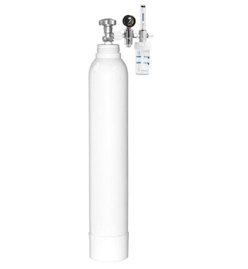 Butle tlenowe z reduktorem ciśnienia/przepływomierzem/nawilżaczem Butle tlenowe z reduktorem ciśnienia, nawilżaczem i przepływomierzem. System ten umożliwia podejść profesjonalne do terapii tlenowej, w sytuacjach ostrych bądź chronicznych patologii oddechowych. Zestaw zawiera: zawór bezpieczeństwa, reduktor ciśnienia, średnica manometru/średnica pomiarowa 40 f. skala 0-315 barów, nawilżacz, rotacyjny przepływomierz 0-15 l/min. Butle tlenowe zawierają dodatkowo: chromowy zawór tlenu, stalowe wyjście do instalacji tlenowej, świadectwo badań (łącznie na zbiornik od 0,5 do 5 l; pojedynczo na zbiornik od 7 do 14 l).