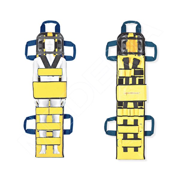 Połączenie systemu stabilizacji odcinków szyjnych i unieruchamiania podczas transportu. Zaprojektowany z myślą o dzieciach o wadze do 30 kg i wzroście od 60 do 120 cm. Długość pasów brzusznych, ramiennych i piersiowych można regulować, a zastosowanie rzepów Velcro® ułatwia monitorowanie czynności oddechowych i pracy serca dziecka. Pasy kończyn dolnych i kostek są połączone z deską potrójnym szwem i również wykorzystują rzepy Velcro® jako zapięcie, umożliwiając niezależne przeprowadzanie zabiegów medycznych i unieruchamianie tych części ciała. Ułożenie pasów można różnicować tak, aby zapewnić maksymalną stabilność i wygodę pacjenta. Pokrowiec ze Spentexu® można łatwo umyć po użyciu. Rzepy Velcro® umożliwiają łatwe zdjęcie pokrowca w celu wyprania go w pralce automatycznej. Pięć uchwytów sprawia, że zarówno podnoszenie, jak i przenoszenie jest ułatwione. Wewnętrzna deska, wykonana z wielowarstwowej brzeziny, pokryta jest warstwą farby, aby uniemożliwić przenikanie krwi i innych płynów. Możliwe jest przeprowadzanie badań radiologicznych, tomografii komputerowej i rezonansu magnetycznego. Warstwa laminowanej pianki poliuretanowej o zamkniętych komórkach sprawia, że deska pozwala na naturalne ułożenie kręgosłupa przy zwiększonym komforcie pacjenta.