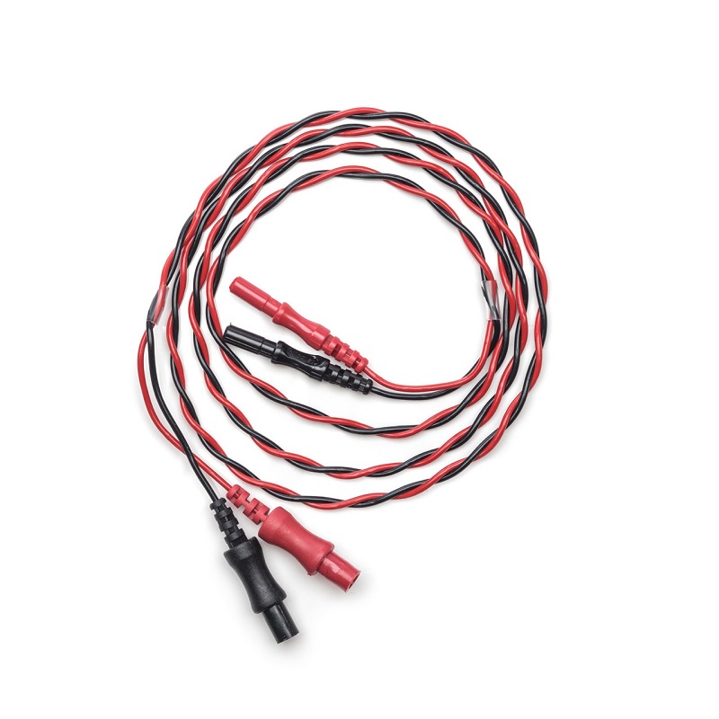 Dwa skręcone przewody o długości 150 cm, wtyk DIN42802 i gniazdo do DIN42802, czerwono/czarny.