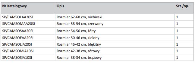 Czepek występuje we wszystkich stosowanych powszechnie rozmiarach w systemie 10-20.