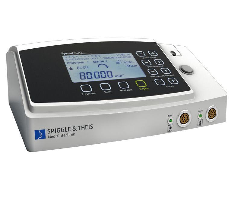 SpeedSurg - wiertarka wysokoobrotowa najnowszej generacji niemieckiej firmy Spiggle&Theis. Wszytkie elementy zostały zaprojektowane i wyprodukowane tak, aby zapewnić maksymalny komfort pracy chirurga. Mikromotor oraz rączki wysokoobrotowe posiadają unikatowy system SecureLock oraz QuickRelease, które gwarantują bezwibracyjną, płynną i wpełni bezpieczną pracę elementów wysokoobrtowych. SpeedSurg ma wbudowaną pompę perystaltyczną oraz nożny regulator parametrów pracy. Rozbudowane MENU pozwala na zmianę wielu parametrów i personalizację ustawień. System może być wyposażony w wiertła jedno- oraz wielorazowe oraz kompletny system do mycia i sterylizacji wszystkch elementów roboczych.