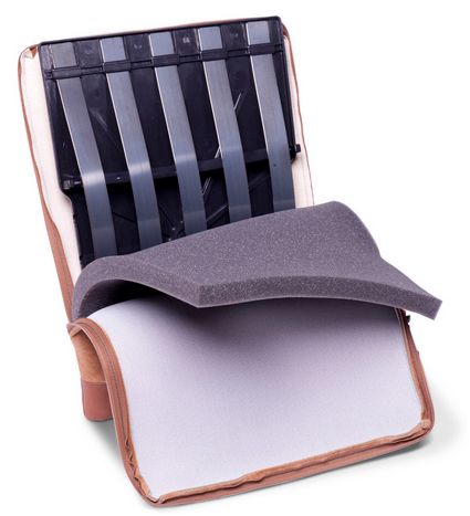 Szwedzki korektor lędźwiowy od lat oferowany przez firmę Ma-Je-R jest jedynym dostępnym na rynku trwałym i estetycznym urządzeniem zbudowanym ze stelażu z twardego plastiku i metalowych żeber podpierających wkładkę z pianki poliuretanowej. Stelaż obszyty jest welurowym pokrowcem dostępnym w kolorze grafitowym, szaroniebieskim, beżowym, wiśniowym i zielonym. Pokrowiec zamykany jest na zamek błyskawiczny.