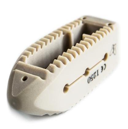 z włókien węglowych PEEK. Bardzo ważną cechą klatek jest wbudowany w nie system szczelin pozwalający na mikroruchomość układu, co zapewnia dynamizację procesu leczenia oraz sprzyja powstawaniu szybszego i lepszego jakościowo zrostu kostnego. Wbudowane znaczniki tantalowe umożliwiają lokalizację klatki w badaniu RTG. System TLIF posiada rozwiązanie wielokątowego mocowania implantu do uchwytu co w połączeniu z niesymetrycznym, bananowym kształtem implantu pozwala na szybką i prostą implementację.