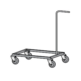 Rama wózka służąca do ustawiania na niej koszy i pojemników wykonana jest ze stali kwasoodpornej, co umożliwia mycie i dezynfekcję wózka. Wózek wyposażony jest w cztery obrotowe kółka jezdne.