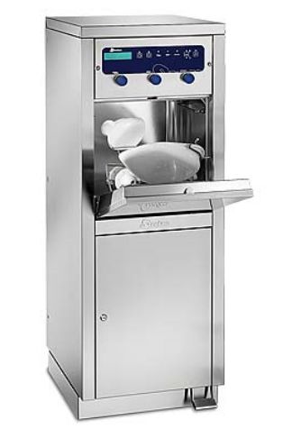 Myjnia-dezynfektor do kaczek i basenów Steelco BP 100 H jest nowoczesnym urządzeniem zapewniające bezpieczne i skuteczne mycie oraz dezynfekcję termiczną naczyń powszechnie używanych w szpitalach takich jak: kaczki, baseny, butle do ssaków, wiadra. Myjnia spełnia w pełni Polskie i Europejskie standardy stawiane tego typu urządzeniom, a zwłaszcza wymagania normy PN-EN ISO 15883-1/3. Dzięki wyposażeniu myjni w przyciski łokciowe oraz automatyczne otwieranie i zamykanie drzwi przy pomocy przycisku nożnego, całkowicie wyeliminowano konieczność kontaktu dłoni operatora z urządzeniem minimalizując tym samym możliwość zakażeń krzyżowych. Automatyczne opróżnianie kaczek, basenów, butelek następuje w momencie zamykania drzwi. Najwyższą skuteczność mycia i dezynfekcji zapewnia system wielu dysz myjących (6 dysz obrotowych i 4 stałe). Dezynfekcja termiczna w temperaturze 93°C. Myjnia standardowo wyposażona jest w kosz na jedną kaczkę i jeden basen (opcja 2 kaczki i 1 basen lub 4 kaczki). Możliwość zastosowania koszy i tac do mycia małych przedmiotów. Jako opcja występuje system suszenia mytych przedmiotów przy pomocy wymuszonego obiegu gorącego powietrza filtrowanego filtrem absolutnym HEPA klasy H14.