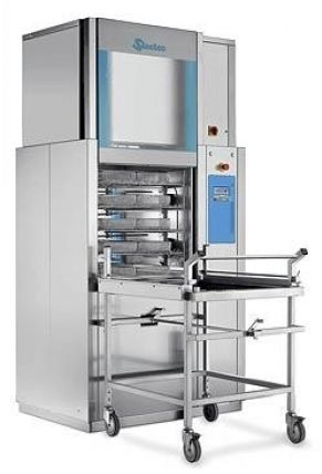 Pozostałe zalety urządzenia: dzięki innowacyjności zastowań została osiągnięta redukcja czasu pełnego cyklu do 30 min, wyposażona w system identyfikacji wózków wsadowych, urządzenie w całości wykonane ze stali kwasoodpornej, dwie wydajne pompy obiegowe, załadunek i rozładunek przeprowadzany za pomocą wózków transportowych, kolorowy panel dotykowy wyposażony w system STEELCOTRONIC zapewnia optymalizację procesu i personalizację programów bezpośrednio z panelu urządzenia, 65 programów mycia i dezynfekcji (w tym pięć programów serwisowych), termodezynfekcja w temperaturze 93oC i dezynfekcja termiczno-chemiczna, intensywne mycie instrumentów do anestezjologii, butelek dziecięcych, gumowych butów i szkła laboratoryjnego, drzwi z hartowanego szkła otwierane automatycznie zostały zaprojektowane aby sprostać wymaganiom największych centralnych sterylizatorni, urządzenie zapewnia doskonałe efekty mycia i dezynfekcji oraz suszenia, agregat suszący gorącym powietrzem z regulacją temperatury suszenia wyposażony w filtr klasy HEPA, programy zabezpieczone kodem dostępu, możliwość modyfikacji programów (czasu, temperatury, ilości dozowanego detergentu) do indywidualnych wymagań, wyposażone w port RS 232 do podłączenia PC, co pozwala na drukowanie informacji statystycznych, kondensator oparów, zmiękczacz wody w standardzie, możliwość rozbudowy do 4 pomp detergentu, możliwość składowania do 4 pięciolitrowych kanistrów z detergentem w dolnej przestrzeni urządzenia.