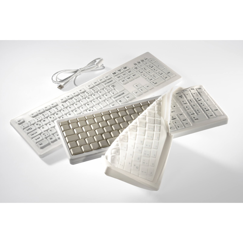Nasze higieniczne klawiatury i myszy stericlin® można stosować w krytycznych pod względem higieny obszarach jak sale operacyjne, stacje intensywnej terapii, działy sterylizacji (ZSVA/AEMP) oraz gabinety lekarskie. Ich powierzchnia zewnętrzna jest kompletnie zamknięta i odporna na wszystkie typowe środki do czyszczenia i dezynfekcji. Tym samym klawiatury można dezynfekować w normalnych procesach czyszczenia.