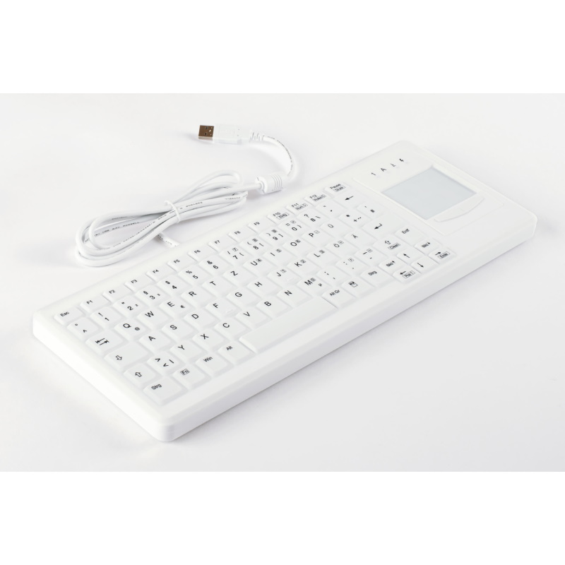 | 3FSIN863130 | Higieniczna klawiatura bezprzewodowa Klawiatura szklana Cleankeys CK3-15, Szkło Gorilla Glas 2 (0,7 mm) z panelem dotykowym (zintegrowanym w polu numerycznym, z funkcją przełączania)/USB dongle, CleanFunction do odłączenia pola przycisków podczas czyszczenia, Kolor: biały, wielkość: 387 × 150 × 22 mm, Całkowicie zamknięta (stopień ochrony IP65), Dezynfekcja przez wytarcie | 1 |
