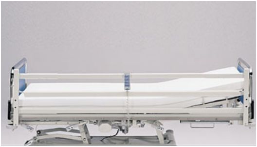 Barierka boczna B-08 wykonana z aluminium, mocowana do szczytów łóżka.