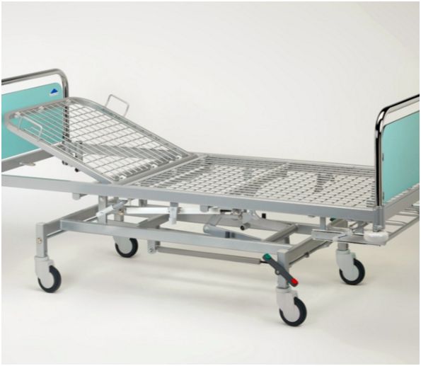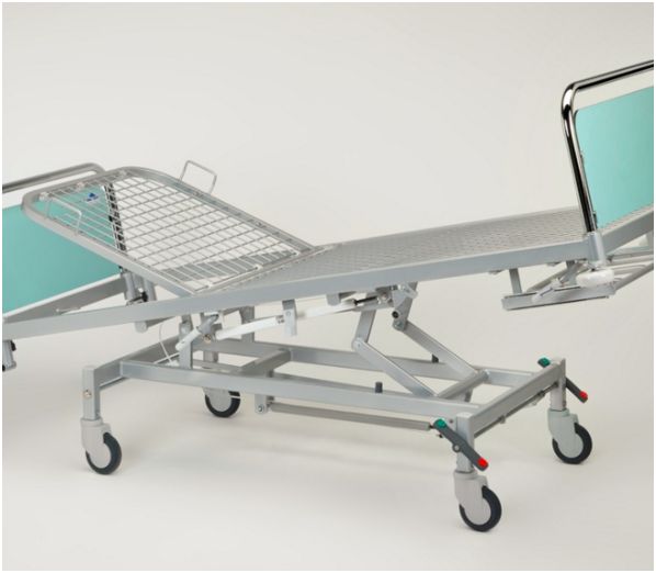 Przechyły Trendelenburga oraz anty-Trendelenburga dokonywane dźwignią umieszczoną pod leżem w sekcji nożnej, przy pomocy sprężyn gazowych. Szczyty łóżka wykonane z rur pokrytych powłoką niklowo-chromową, wypełnione wkładem z płyty tworzywowej, wodoodpornej, dwustronnie laminowanej. Układ jezdny stanowią cztery koła blokowane centralnie, w tym jedno z blokadą kierunkową (opcja) lub indywidualnie (standard).